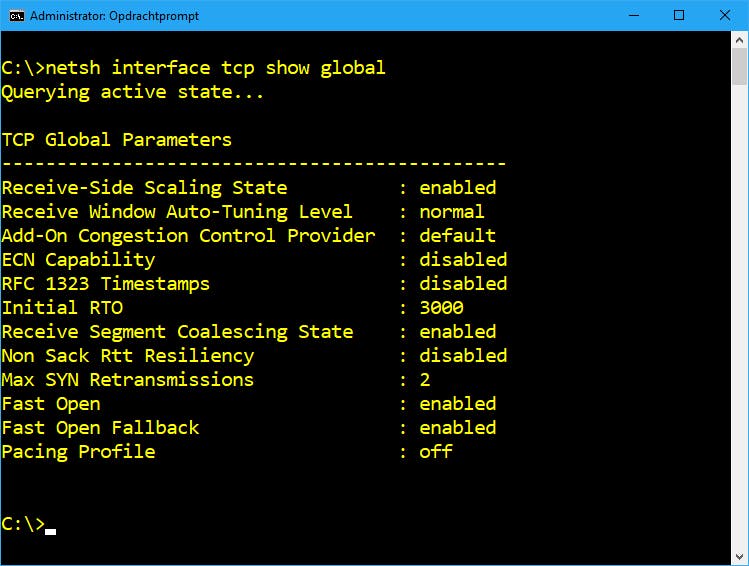 Internet schotelt je regelmatig “ultieme tips” voor waarmee je de snelheid van je internetverbinding merkbaar zou kunnen verhogen, Het gaat dan haast altijd om tips die je allerlei technische parameters laten aanpassen – parameters van het type die je te zien krijgt wanneer je als administrator naar de opdrachtprompt gaat en daar het commando netsh interface tcp show global uitvoert. Zeggen deze items je niet zoveel en heb je ook geen duidelijk idee over de mogelijke impact ervan, dan doe je er echter beter aan deze tips links te laten liggen. Immers, Windows stelt deze parameters doorgaans zelf al optimaal in.