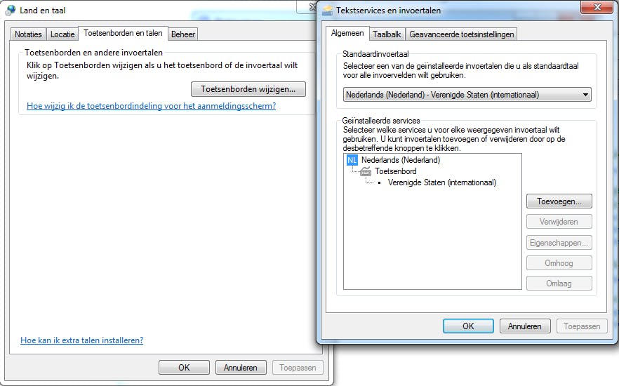 Onder Geïnstalleerde services zie je nu welke toetsenbordinstellingen je al ter beschikking hebt. Voeg toe wat je eventueel mist – en verwijder vooral wat je niet nodig hebt! Je kunt ze altijd opnieuw installeren als je ze mist.