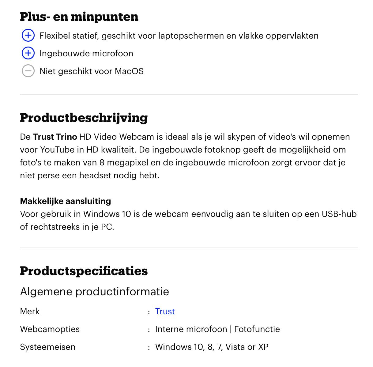 Kijk goed of de webcam die je op het oog hebt ook samenwerkt met jouw besturingssysteem. Vrijwel alle camera’s zijn geschikt voor Windows 10, maar een aantal werkt niet met Mac en Linux. Ook als je een oudere versie van Windows draait, kan het zijn dat de camera niet wordt herkend. Als op de verpakking niet specifiek staat beschreven dat het met jouw besturingssysteem werkt, vraag het dan aan de fabrikant of check een paar forums of er mensen ervaring hebben met de combinatie van de webcam en jouw besturingssysteem. Daarnaast is het belangrijk om te kijken wat de minimale systeemeisen zijn van een webcam. Als je systeem de webcam eigenlijk helemaal niet aankan, heb je weinig aan het apparaat. Kijk vooral naar de processorsnelheid en het interne geheugen dat de webcam minimaal nodig heeft. Heb je een nieuwe computer, dan is dit geen enkel probleem.