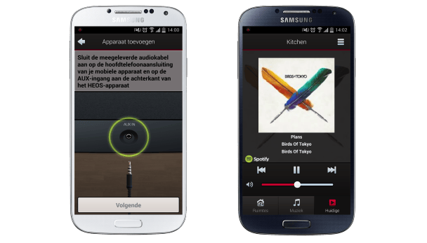 De installatie van een HEOS-luidspreker is niet heel moeilijk, maar wel een beetje vreemd. Je moet de meegeleverde 3,5mm-geluidskabel aansluiten op je smartphone of tablet en vervolgens op de HEOS-luidspreker. Via geluidssignalen worden de configuratiegegevens voor wifi vervolgens verzonden naar de HEOS.