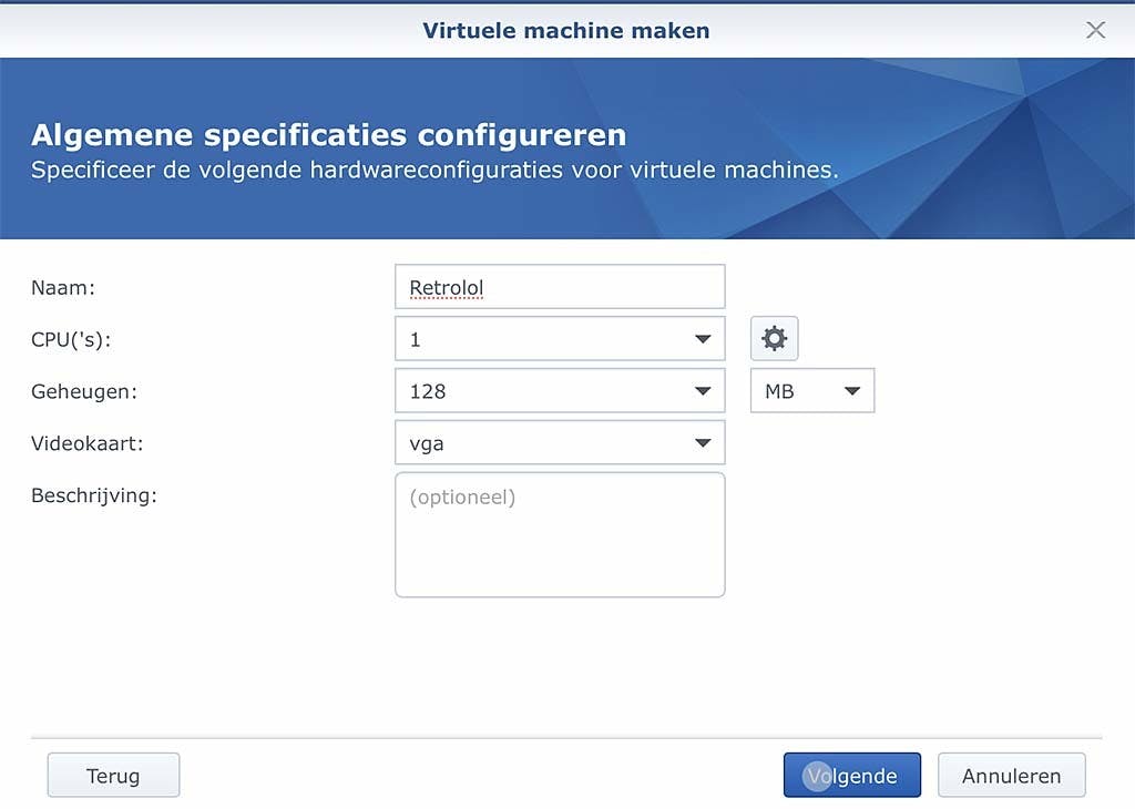 Kies simpelweg steeds de standaard gesuggereerde instellingen en het komt vanzelf goed. Bedenk ook dat je niks op de NAS zelf verwijdert, formatteert of wat dan ook. Het gebeurt echt alleen allemaal binnen die virtuele machine. In het allerberoerdste geval is het een kwestie van uithuilen en opnieuw beginnen. Net als vroeger, eigenlijk...