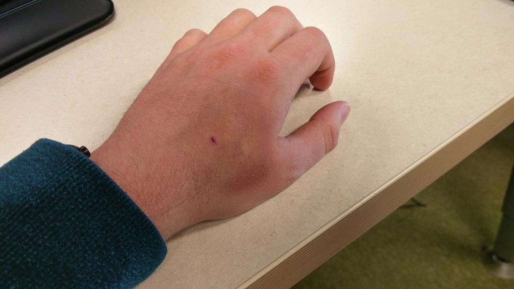 Om te beginnen: Ik merk niet eens meer dat de chip in mijn hand zit, en dat is fijn. Biohacking is een serieuze toewijding, want als de chip eenmaal onder je huid zit krijg je die er niet meer uit. Toch valt het uiteindelijk erg mee, want alleen de eerste week merk je goed dat je zo'n chip hebt. De fysieke gevolgen zijn verwaarloosbaar: Een klein litteken op mijn hand op de plek waar de naald mijn huid in ging, en aanvankelijk een grote blauwe plek van de prik, die na een tijdje ook gewoon weer weg ging.