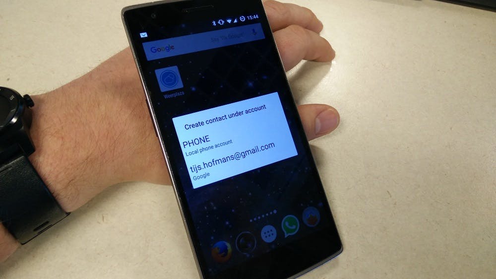 We begonnen met een simpel stukje tekst, onze biometrische 'Hello World!', maar daar kun je niet zo heel veel mee. Interessanter is een visitekaartje, dus maakte ik een visitekaartje aan waardoor ik mezelf als Android-contact kon delen met anderen. Daar liep ik echter al tegen het eerste probleem aan, want dat contact bleek alleen te delen op mijn eigen telefoon en niet op anderen.