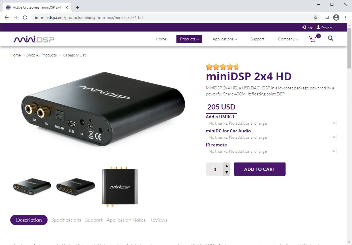 We gebruiken de miniDSP 2x4 HD (ongeveer 250 euro). Er is ook een gewone versie (ongeveer 100 euro). Je kunt ze online aanschaffen op de website van miniDSP zelf of bij webshops als het Nederlandse SoundImports.