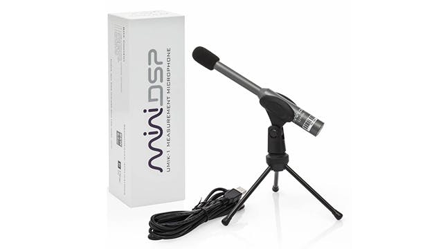 We meten op de luisterpositie. Het resultaat is daardoor niet representatief voor de luidsprekers zelf. Daarvoor zul je ze idealiter in een vrije ruimte meten, zoals buiten. Voor het meten gebruiken we een gekalibreerde microfoon, de door miniDSP ontwikkelde Umik-1. Deze microfoon wordt in feite met een kalibratiebestand geleverd dat we in de software inladen, zodat eventuele afwijkingen in ieder geval niet door de microfoon worden veroorzaakt.