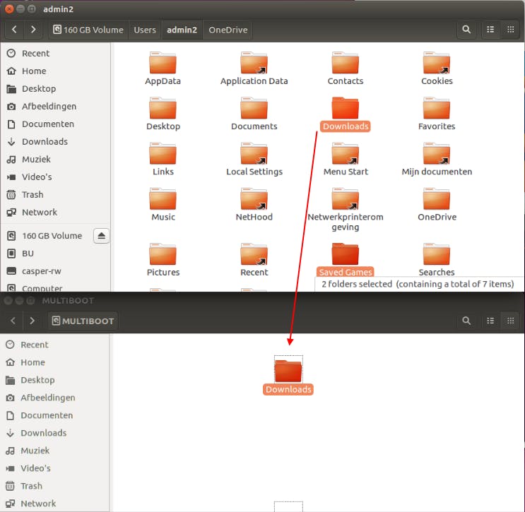 Je kunt nu gerust een bijkomende externe (usb-)schijf aankoppelen: normaliter detecteert de bestandsbrowser die automatisch. Vervolgens navigeer je naar de gewenste Windows-data en versleep je die bestanden eenvoudigweg naar je aangesloten back-upmedium. Die bestanden heb je alvast gered!