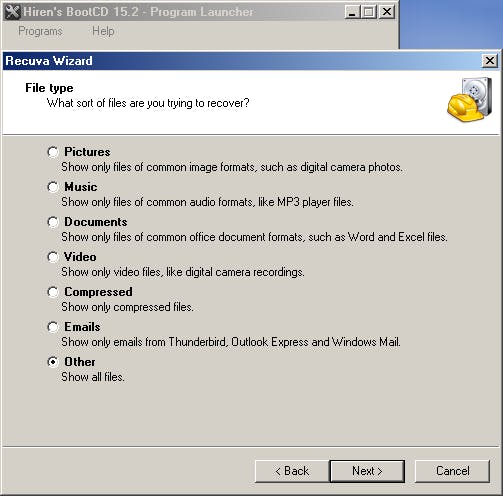 Het wordt natuurlijk al lastiger om data te benaderen wanneer je die per abuis hebt gewist. Hiren’s Boot CD is bij uitstek geschikt voor dit soort van dataherstel. Start de distro dus maar op vanuit je YUMI-stick. In het opstartmenu van Hiren’s Boot CD kies je vervolgens Mini Windows Xp. Je leest het goed: je belandt inderdaad op het bureaublad van een gestripte Windows XP-omgeving. Klik hier op de Start-knop en kies HBCD-menu / Programs / Recovery. In deze rubriek tref je een heel pak datahersteltools aan. Een van de betere om verdwenen bestanden terug te halen is Recuva. Eerst geef je aan naar welk soort bestanden je op zoek bent (zoals Pictures, Documents, Other), vervolgens geef je de locatie aan waar je die data bent kwijtgespeeld, waarna je met de Start-knop de scanronde opstart. Levert die niet de verhoopte resultaten op, probeer het dan door een vinkje te plaatsen bij Enable Deep Scan, maar weet wel dat dit zoekproces heel erg lang kan duren. Om effectief bestanden terug te halen selecteer je die in de resultatenlijst en klik je op Recover. Bewaar die echter niet op de probleemschijf gezien je dan het risico loopt dat die net op de schijflocaties belanden waar nog (andere) ‘verdwenen’ data waren opgeslagen.