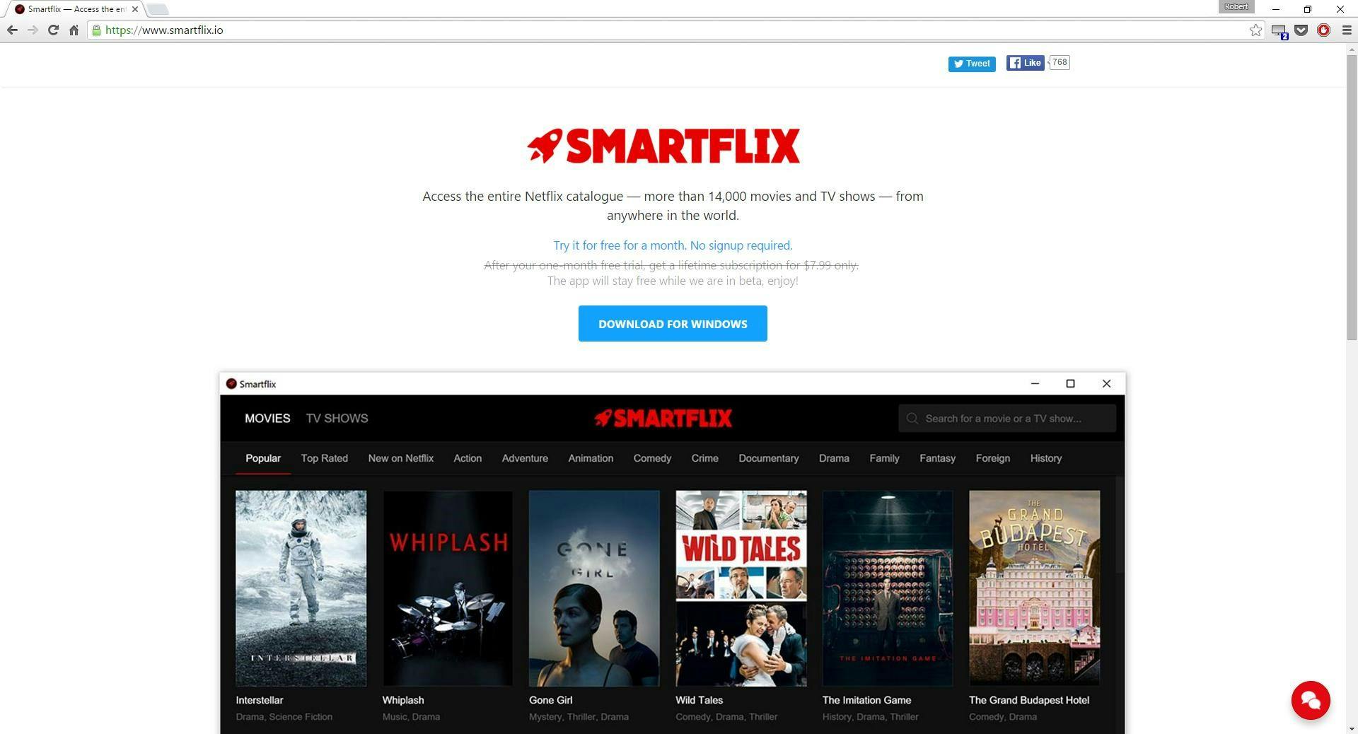 Op het eerste gezicht lijkt Smartflix veel op Popcorntime: Je downloadt de applicatie van de website van Smartflix en installeert het programma. Smartflix draait dus los van je browser.