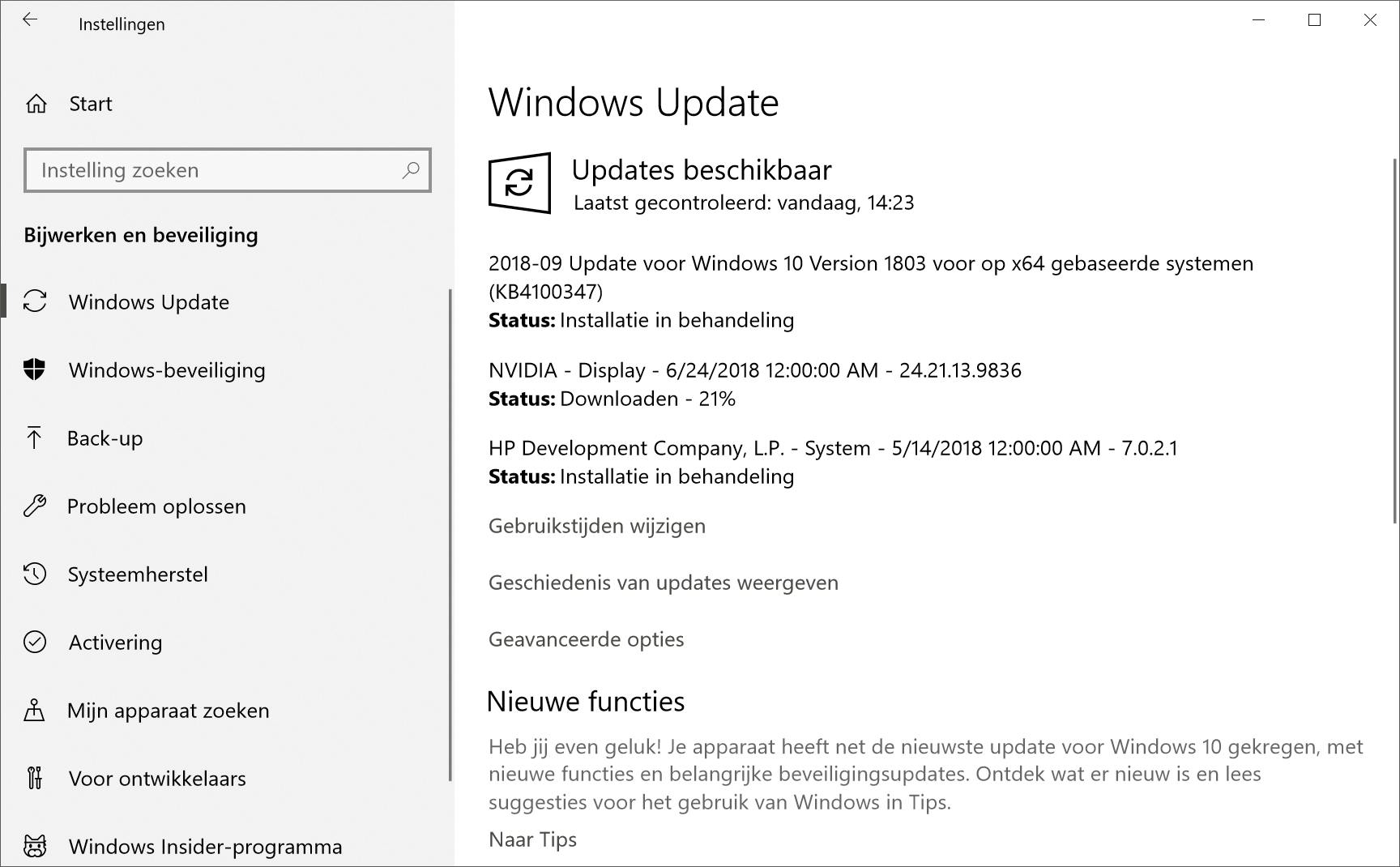 Uiteraard wil je zo snel mogelijk met je nieuwe aankoop aan de slag gaan, maar je zult nog wat geduld moeten hebben. De kans is groot dat je binnen enkele minuten na het maken van een verbinding met je thuisnetwerk de melding zult krijgen dat er updates voor Windows beschikbaar zijn. Afhankelijk van hoelang je pc van de fabriek naar je huis onderweg is geweest, zullen eerst honderden MB’s aan updates moeten worden gedownload en zal je computer één of meerdere malen herstarten. Ons devies: hoe minder je met je computer doet tijdens dit proces, hoe sneller het bijwerken is afgerond.