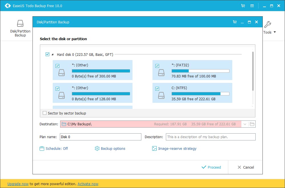 Het is ook mogelijk om hiervoor een gratis programma te gebruiken als Clonezilla of EaseUS Todo Back-up Free. Vergeet niet om een boot-cd of opstart-usb-stick te maken waarmee je de computer toch nog kunt opstarten als het misgaat en waarmee je de schijfkopie kunt terugzetten.