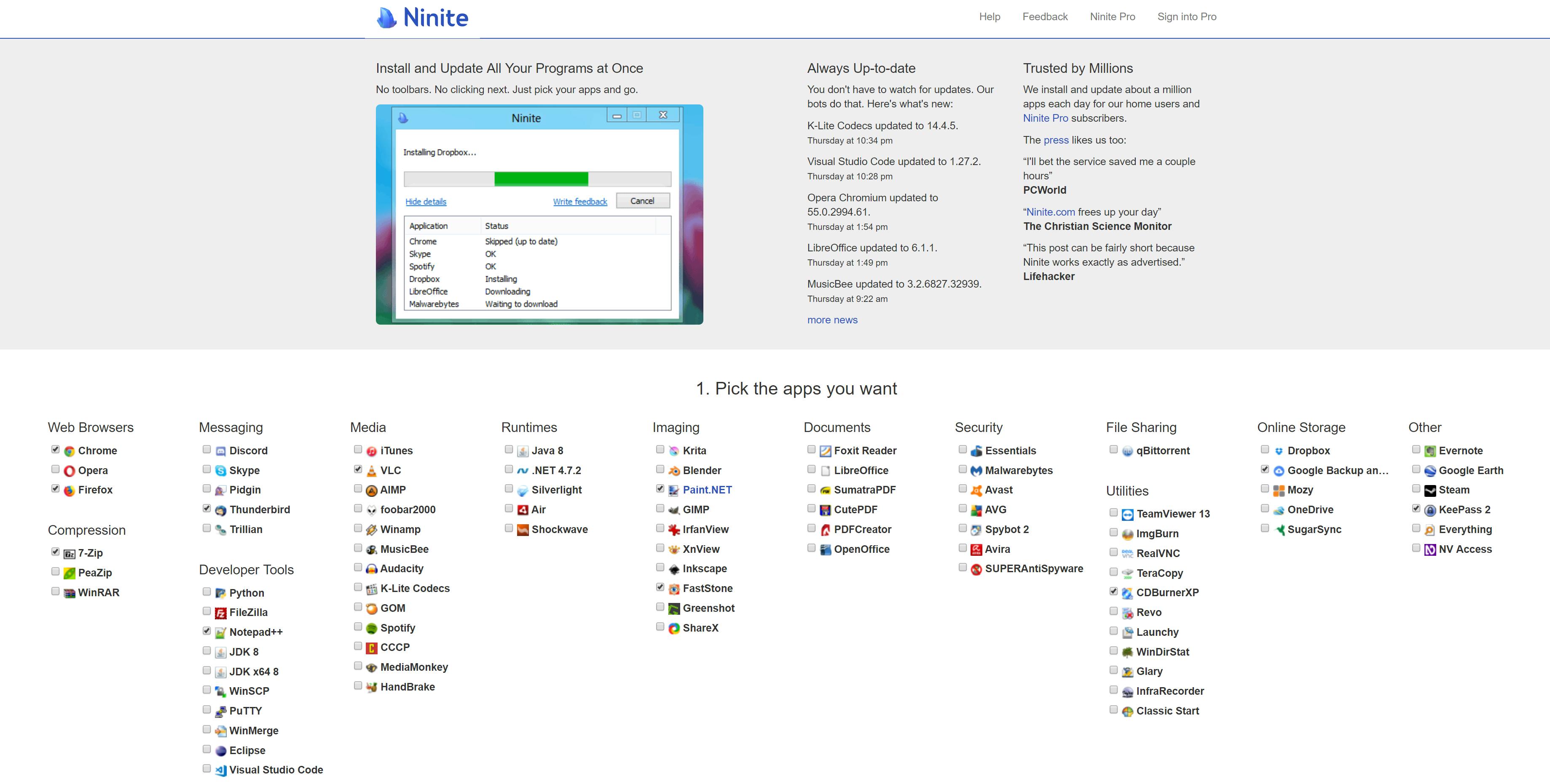 Ninite laat je met simpelweg wat vinkjes veel handige gratis software installeren