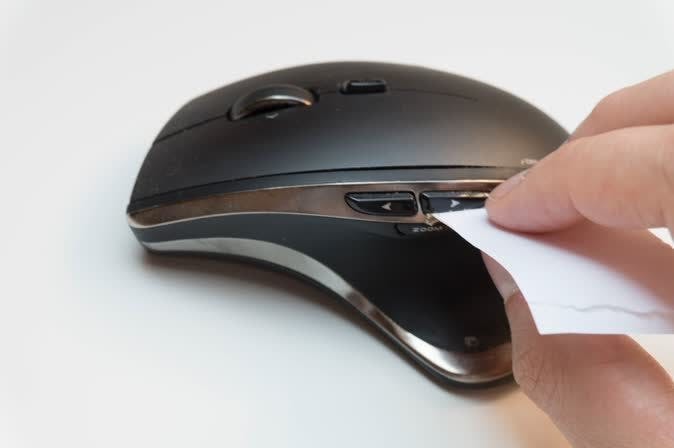 Met een stukje dubbelgevouwen papier trek je vuiligheid uit de naden van je muis.