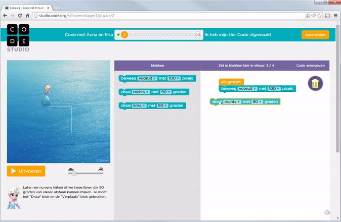 Hour of Code bijvoorbeeld is een wereldwijde introductie voor kinderen om te leren programmeren met 'Hopscotch'. In een uur spelen leren ze hoe ze niet alleen computers kunnen gebruiken, maar vooral hoe ze deze naar hun hand kunnen zetten. Door bouwsteentjes te verslepen, laten ze bekende figuren zoals Anna en Elsa uit 'Frozen' of de bekende Angry Birds bewegen. Hopscotch is dé taal voor kinderen op dit moment, die juist door zijn directe grafische feedback meteen laat zien wat een commando of functie doet.