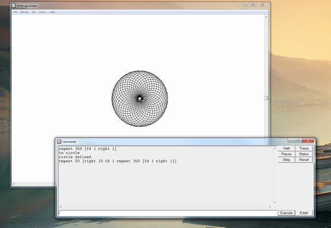 Met MSWLogo (gratis) kun je al snel mooie 'turtle graphics' maken.