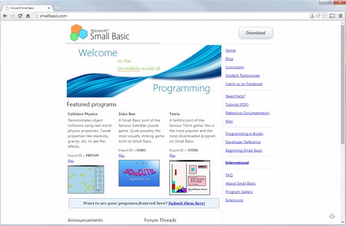 Small Basic is een versimpelde, gratis versie van BASIC, speciaal voor kinderen.