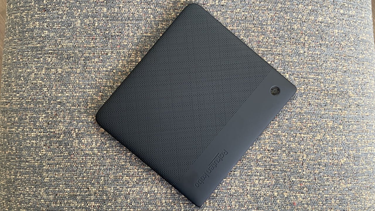 De Kobo Libra 2 houdt prettig vast dankzij het gewicht, randje en plastic materiaal.