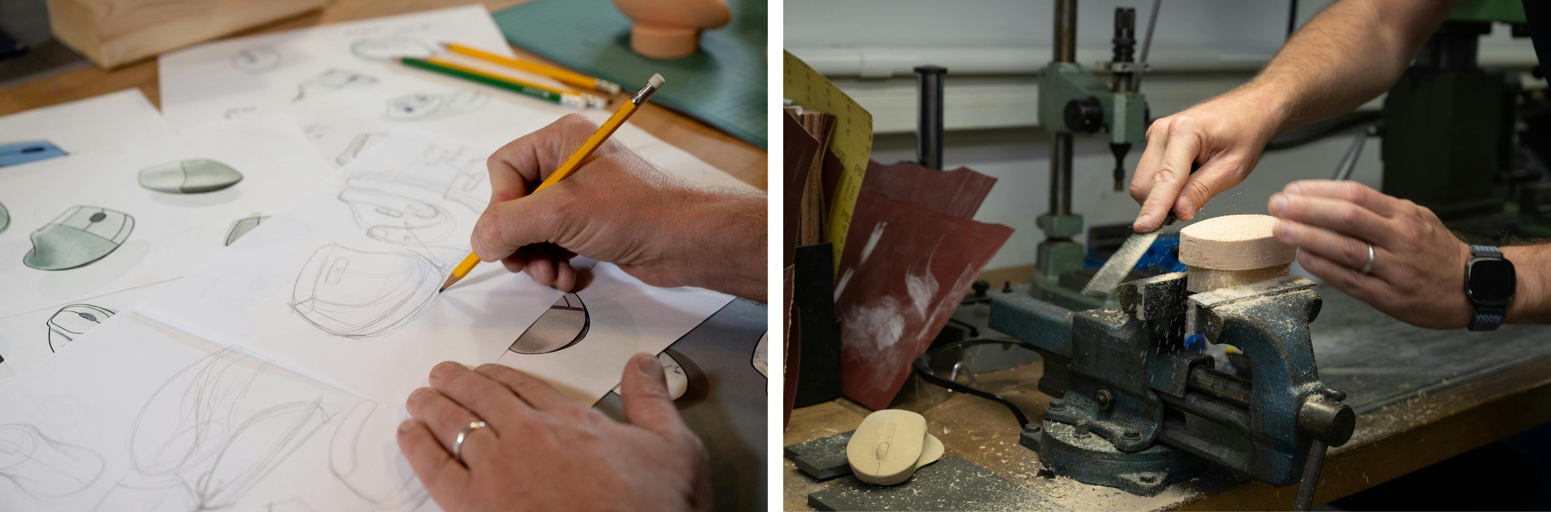 Het ontwerpproces van ieder product begint met het maken van schetsen waarin de ideeën voor een nieuw product worden uitgewerkt. Met modeling foam worden de getekende ontwerpen omgezet in een mock-up. Dit is echt handwerk waarbij de vorm met handgereedschap zoals een vijl wordt gemodelleerd. Omdat veel van de producten waar de ontwerpafdeling aan werkt geheim zijn, wordt er veel feedback gevraagd van andere afdelingen van Logitech waarna het ontwerp steeds verder wordt verfijnd.