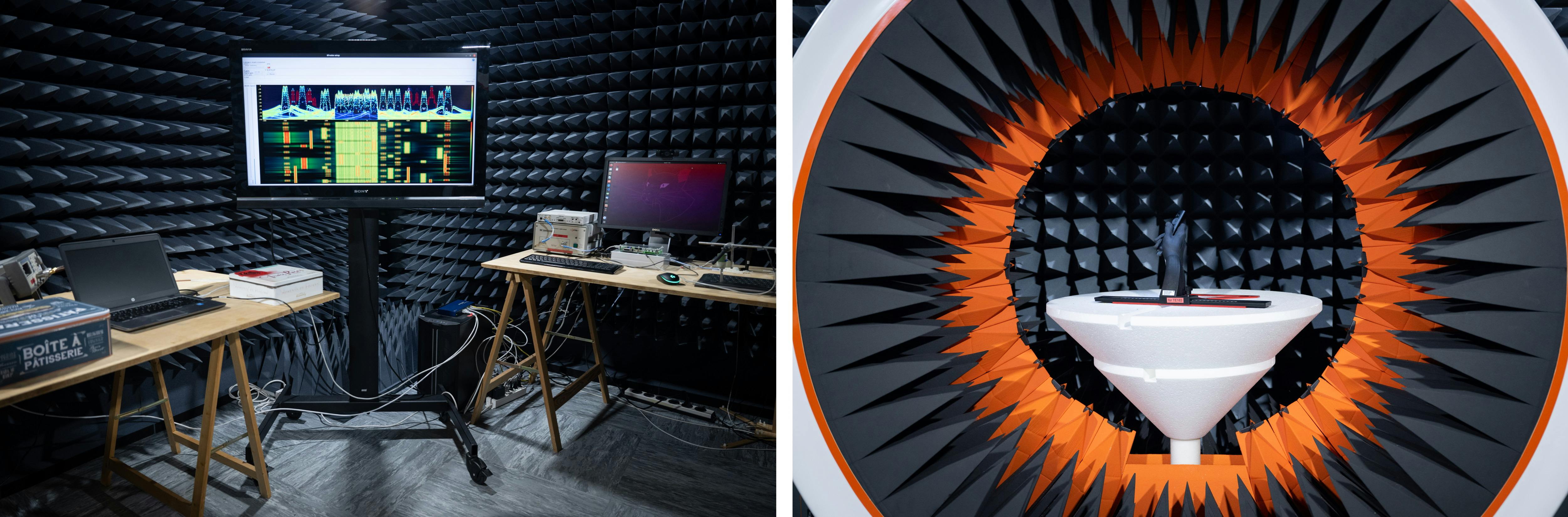 Het product wordt opgesteld in een ruimte die geïsoleerd is tegen elektromagnetische straling. Met een gevoelige antenne wordt vervolgens het stralingspatroon in kaart gebracht. Hierbij wordt ook onderzocht wat de ideale plek voor de antenne in een muis is. In de nieuwste MX Master 3S is de antenne bijvoorbeeld onder de duim van de gebruiker gepositioneerd. Dat lijkt misschien een vreemde plek, maar uit Logitechs testen bleek dat dit toch de meest ideale plek voor de antenne is.