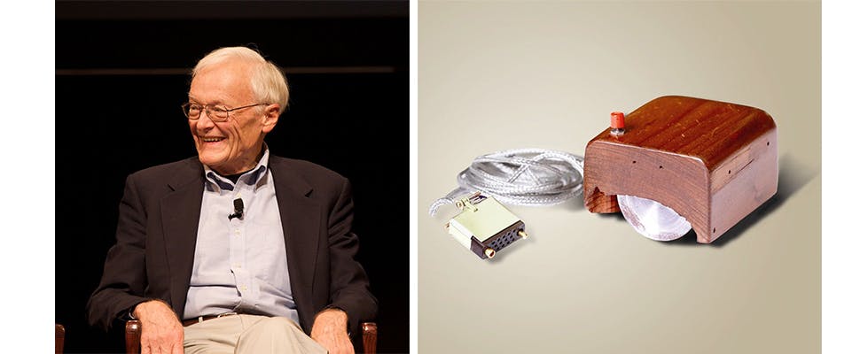 Beide uitvinders werkten destijds voor het Stanford Research Institute. Engelbart bedacht het concept en English bouwde het bruikbare apparaat. De muis werkte door middel van twee wieltjes aan de onderzijde, die een cursor op het scherm over de Y-as en de X-as lieten bewegen. Bovenop zat één knop om mee te klikken. De rechtermuisknop zou pas later uitgevonden worden.