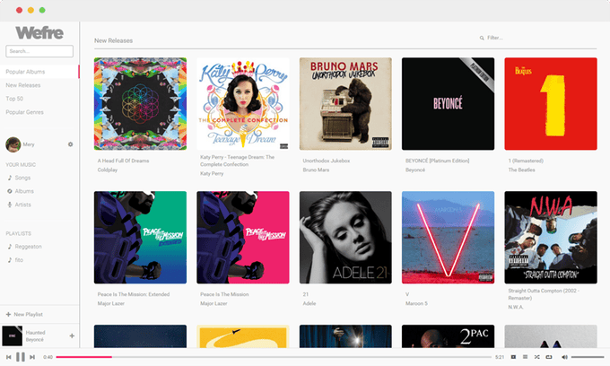 Wefre is op dit moment al te gebruiken via een website, waar je alle muziek die op Spotify staat kunt luisteren. Je hoort tussendoor geen reclames en je hoeft niets te betalen. Het enige dat je nodig hebt is een account met een gebruikersnaam en wachtwoord.