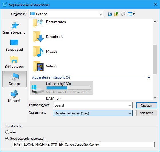Zorg voor een up-to-date back-up voor je aan het register gaat sleutelen