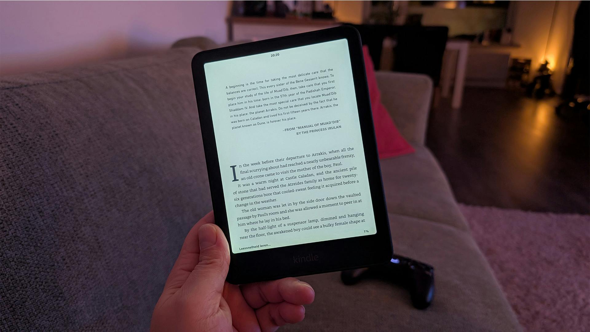 Net als bij andere Kindle-modellen kun je de kwaliteit van het scherm aanpassen op je eigen zicht. Zo heb je verschillende niveaus van helderheid, die er zowel in de avond als overdag prima uitzien. Daarnaast ben je in staat de warmte van het scherm te veranderen. Dan maak je de digitale pagina's in feite meer geel dan wit, maar dat vinden we geen groot probleem. Na een seconde is je zicht daaraan gewend en lees je de woorden prettig van het schermpje. Ook de contrastverhouding is nu hoger. Dat zie je voornamelijk wanneer je comics of graphic novels leest. Een verbetering waarvan we zeggen: meer dan welkom. Maar...