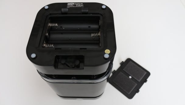 De eerste tegenvaller van de Marmitek BoomBoom 380, is dat deze wordt geleverd zonder batterijen. Die zijn los aan te schaffen voor een kleine 25 euro, bovenop de aanschafprijs van zo'n 109 euro. De BoomBoom 380 komt gelukkig met een meegeleverde stroomkabel van één meter. Dat is alleen veel te kort om de speaker op een mooie locatie buiten te zetten. Je wordt als het ware verplicht om zes D-formaat batterijen aan te schaffen om er goed gebruik van te kunnen maken.