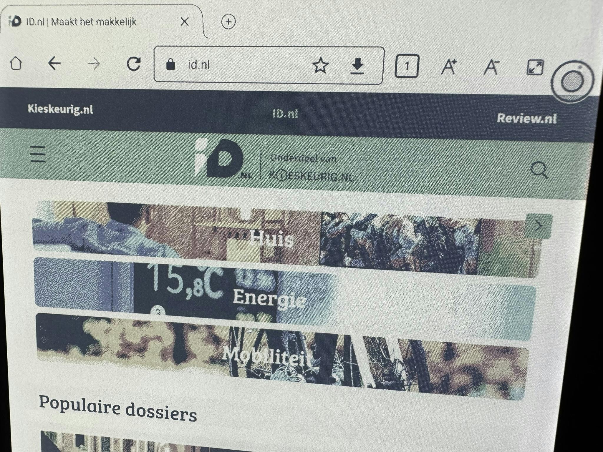 Het 7-inch scherm gebruikt de Kaleido 3-technologie, met 4096 kleuren op 150 ppi en 300 ppi voor zwart-wit. In de praktijk oogt het kleurbeeld nog steeds erg zacht, flets en wollig, met een lichte gelige zweem die vooral opvalt bij bepaalde achtergrondkleuren. Voor strips en grafieken is het prima, maar het haalt het niet bij zelfs de goedkoopste tablets. Het contrast blijft lager dan bij een zwart-wit-e-reader en het lichte screendoor-effect (waarbij je het fijne raster van de pixels op een scherm kunt zien, alsof je door een hor of gaas kijkt) is goed zichtbaar. Ghosting, waarbij oude beeldresten kort blijven hangen, is iets minder storend dan bij zijn voorganger, maar nog altijd aanwezig.