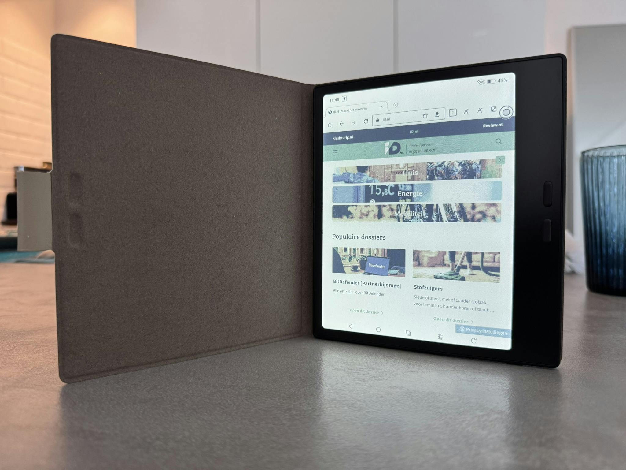 Toch zit daar ook een keerzijde aan. Zowel de knoppen als het touchscreen reageren merkbaar trager dan bij conventionele e-readers, en bij complexe apps merk je dat de hardware het eigenlijk maar moeilijk kan bijbenen. Het apparaat voelt daardoor minder direct en soepel aan, zelfs bij simpele handelingen zoals het invoeren van een pincode.