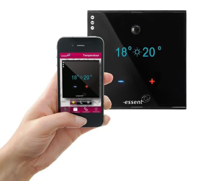 Op de Essent E-thermostaat is de aanwezigheidssensor duidelijk zichtbaar.