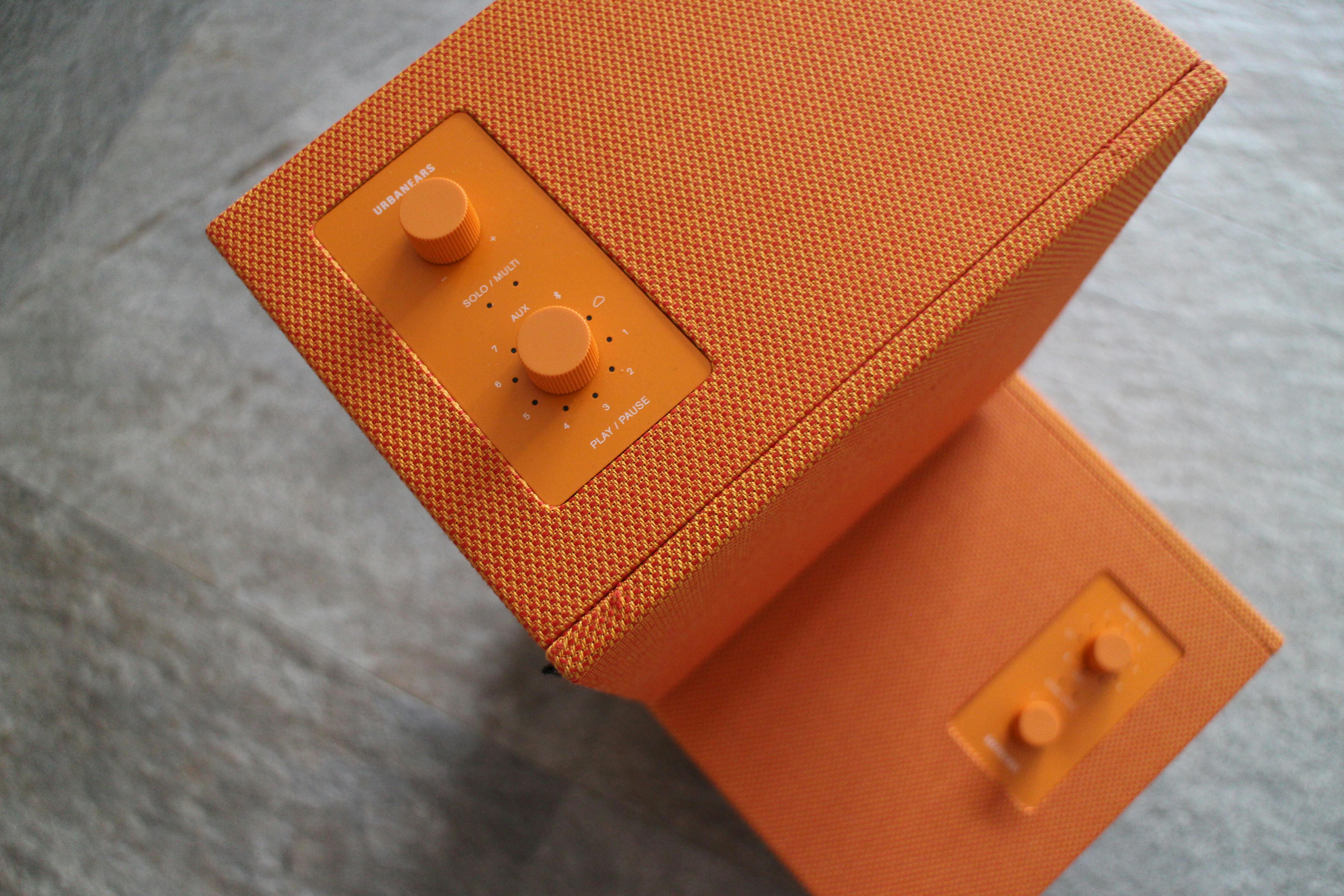 Zoals we van Urbanears gewend zijn, zijn de twee speakers verkrijgbaar in veel verschillende kleuren, waardoor je zelf kunt bepalen hoe aanwezig de Connected Speakers zijn. Van knaloranje of zachtroze tot donkerblauw of donkergrijs; de keuze is reuze. Wij mochten aan de slag met Goldfish Orange.