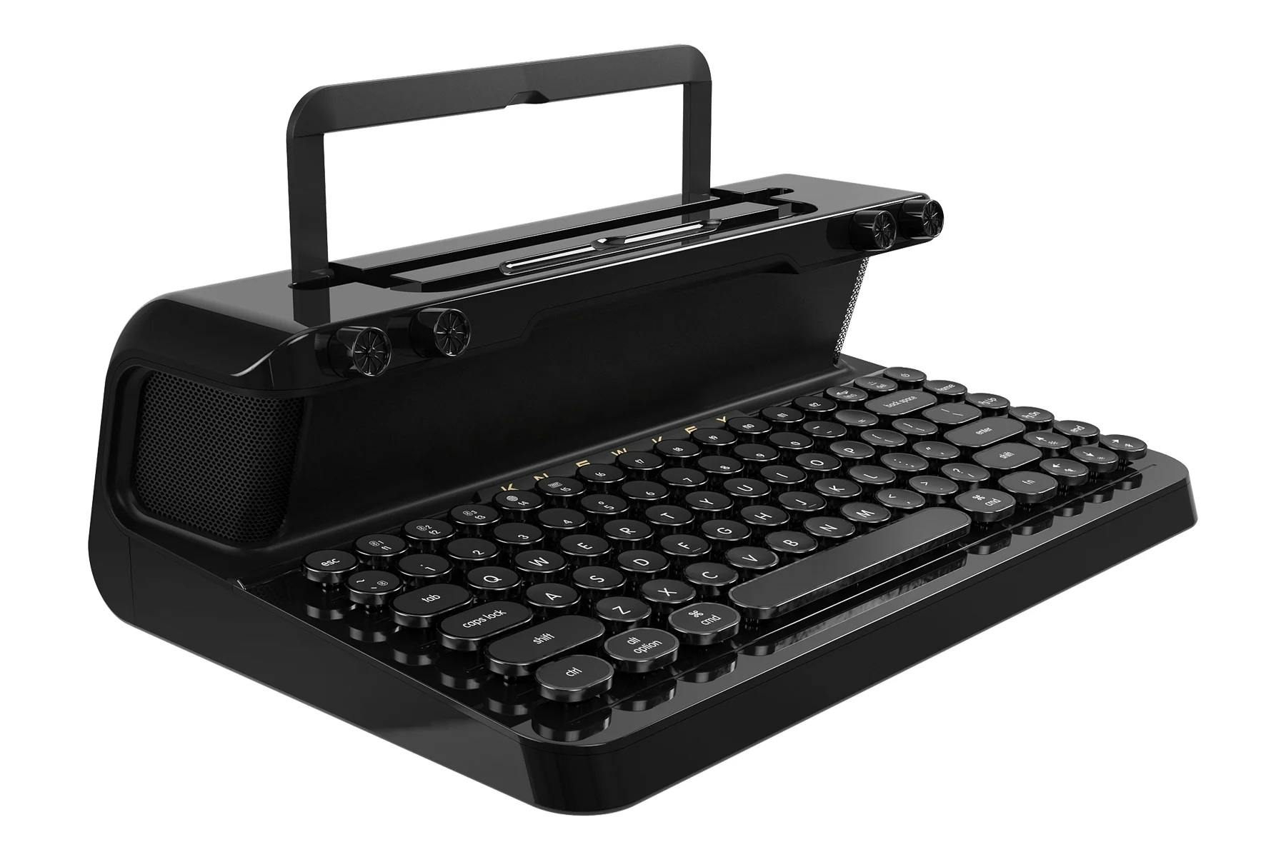 De Yunzii Actto B303 is een betaalbaar toetsenbord in de vorm van een ouderwetse typemachine. De gleuf aan de bovenzijde biedt plek aan een smartphone of tablet, zodat je op een iOS- of Android-apparaat vlot kunt tekstverwerken. Daarnaast koppel je de Actto B303 net zo makkelijk aan een pc of Mac. De verbinding verloopt via bluetooth. Deze retro-uitvoering werkt op twee AAA-penlites. Na twintig minuten inactiviteit gaat het toetsenbord automatisch in de slaapmodus, waardoor de batterijen minder snel leeg raken. Het product is verkrijgbaar in de kleuren roze, donkerblauw, mintgroen, beige en wit.