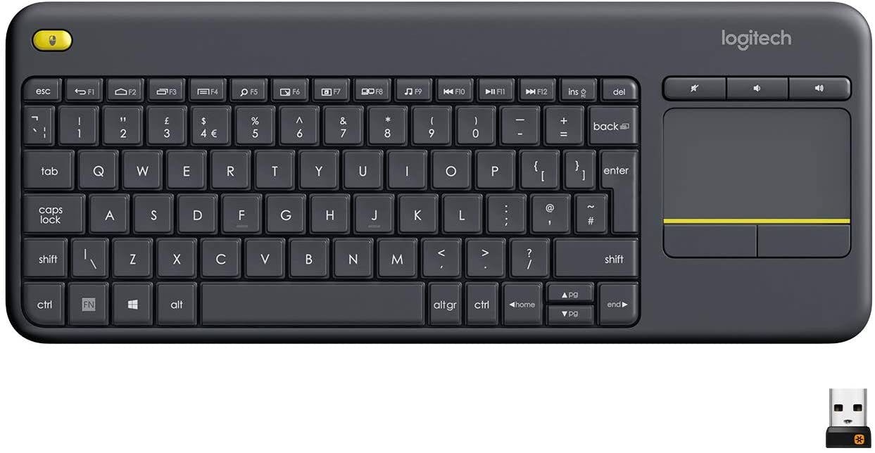 Met de Logitech K400 bedien je een toetsenbord en touchpad in één. Handig wanneer je bijvoorbeeld een monitor of scherm vanaf de bank wilt bedienen, zoals bij gebruik van een mediaspeler of pc. Stop de meegeleverde usb-ontvanger in een vrije usb-poort en dit qwerty-toetsenbord werkt meteen. Het bereik bedraagt zo’n tien meter.