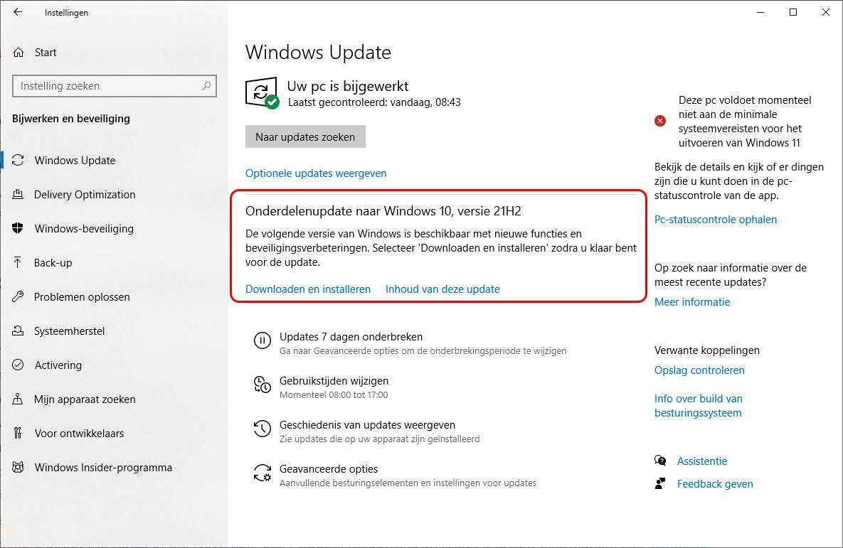 Windows 10 November 2021 Update nu te downloaden, minder updates gepland