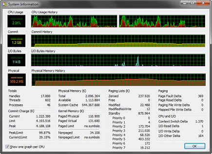 - System Cache: geeft hier in Windows 7 RC een foutieve waarde; in Vista en XP wordt de juiste hoeveelheid gegevens in de systeemcache vermeld.