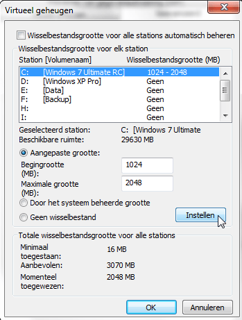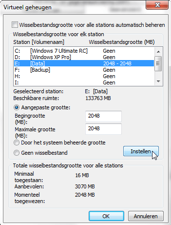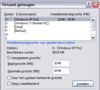 Handmatig instellen van de pagefile.