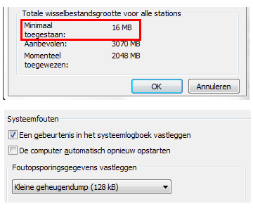 Een pagefile van 16 MB is ruim voldoende voor een kleine geheugendump.