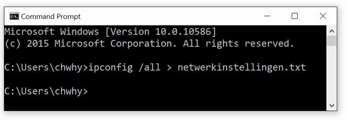 ipconfig /all > netwerkinstellingen.txt