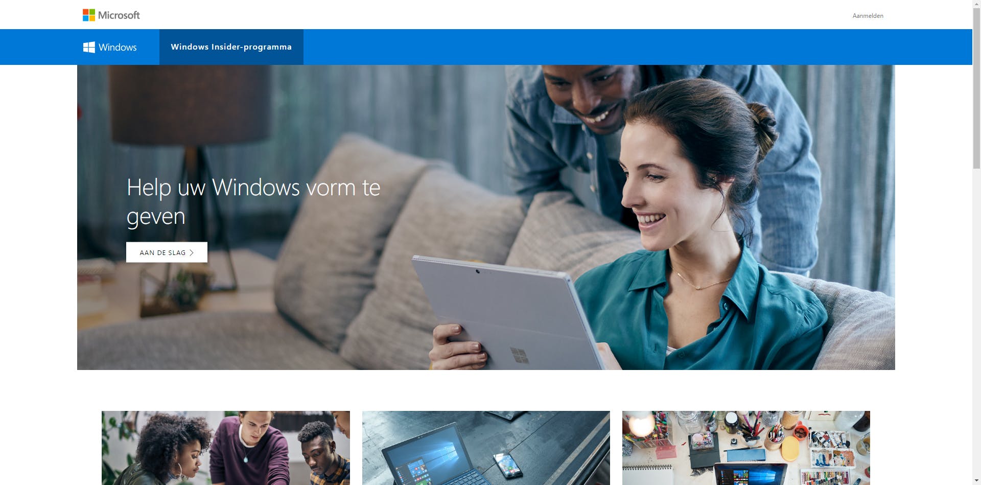 Je kunt pas meedoen aan het Insider-programma van Windows 10 zodra je je daarvoor hebt aangemeld met een Microsoft-account. Ga eerst naar https://insider.windows.com en druk op Aan de slag. Voer vervolgens de inloggegevens in van je Microsoft-account. Zodra je de boodschap “Welkom bij het programma, insider” voorgeschoteld krijgt, hoef je verder in principe niets meer te doen. Druk je hier nog op de paarse knop Pc, dan kom je op een pagina uit waar Microsoft je aan het programmaatje uit de vorige tip helpt voor het updaten van Windows 10. Als je met deze tips als tot zover bent gekomen, is dat niet meer nodig.