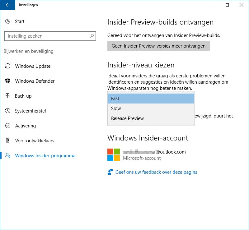 Schrijf je in voor de fast ring om altijd als eerste de updates te ontvangen