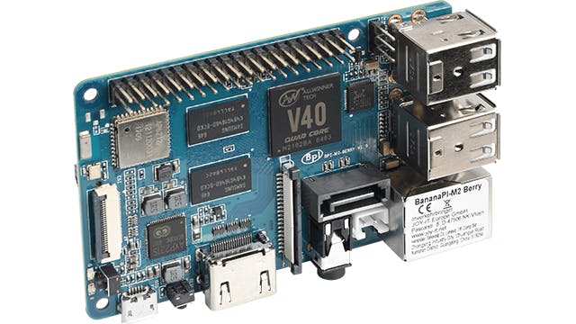 Het Chinese Sinovoip produceert met zijn Banana Pi-reeks verschillende Raspberry Pi-alternatieven en de BPI-M2 Berry is daar een voorbeeld van. In veel opzichten is dit exemplaar gelijk aan de Raspberry Pi 3. Zo zitten de meeste connectoren op exact dezelfde plek, zoals de 3,5mm-geluidsuitgang, gigabit-ethernetpoort, hdmi1.4-aansluiting en vier usb2.0-poorten. Dat kan het makkelijker maken om een geschikte behuizing op de kop te tikken. Maar let op: niet alle connectoren zitten op exact dezelfde plek (de camera en interne display-connector zijn iets verschoven). Sommige behuizingen passen dus niet.