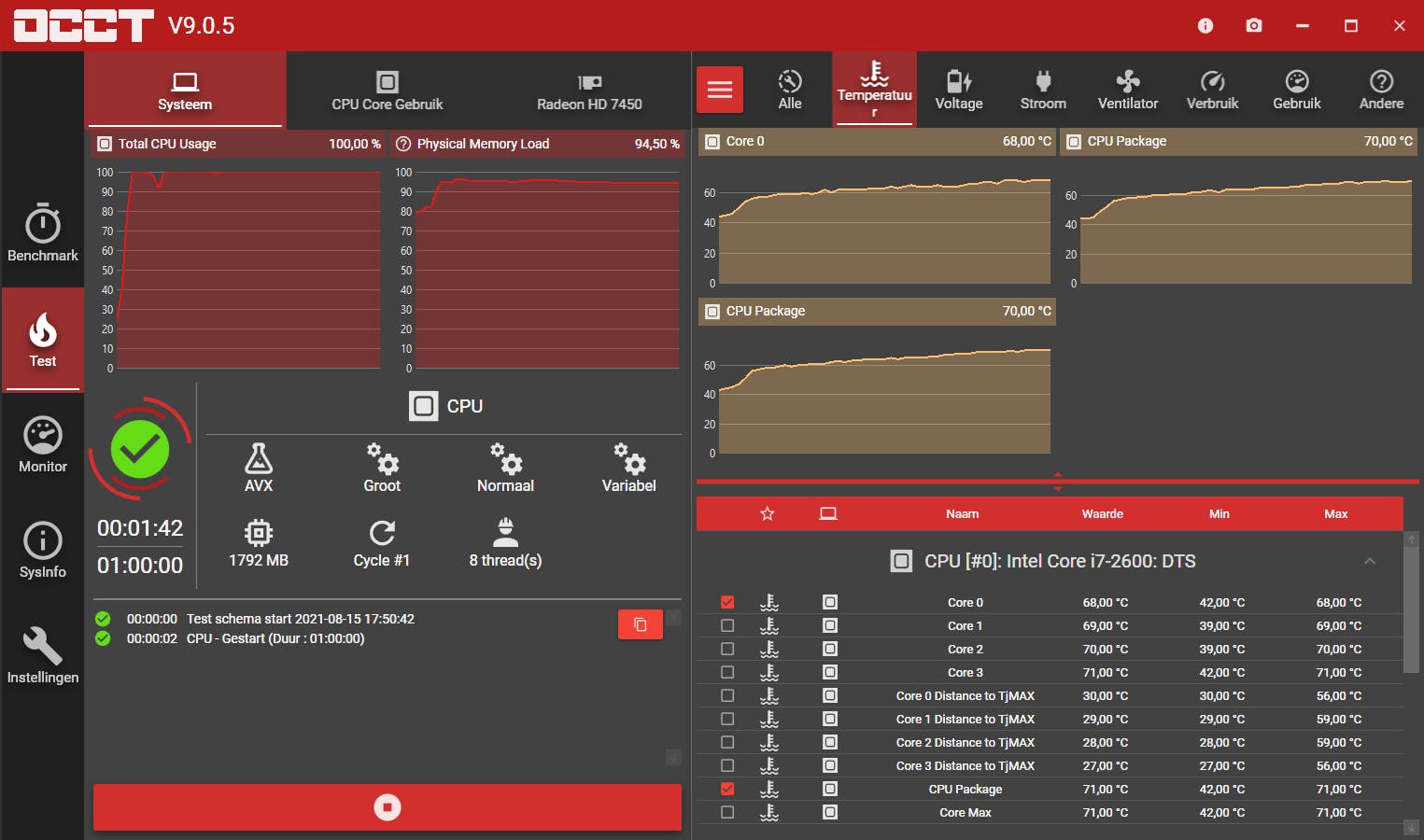 Je vindt zo’n stresstest op het tabblad Bench van CPU-Z, via de knop Stress CPU, maar hier valt niks aan in te stellen. Betere tools zijn daarom IntelBurnTest, het multiplatform Prime95 en het fraaie OCCT. We lichten die laatste er even uit.