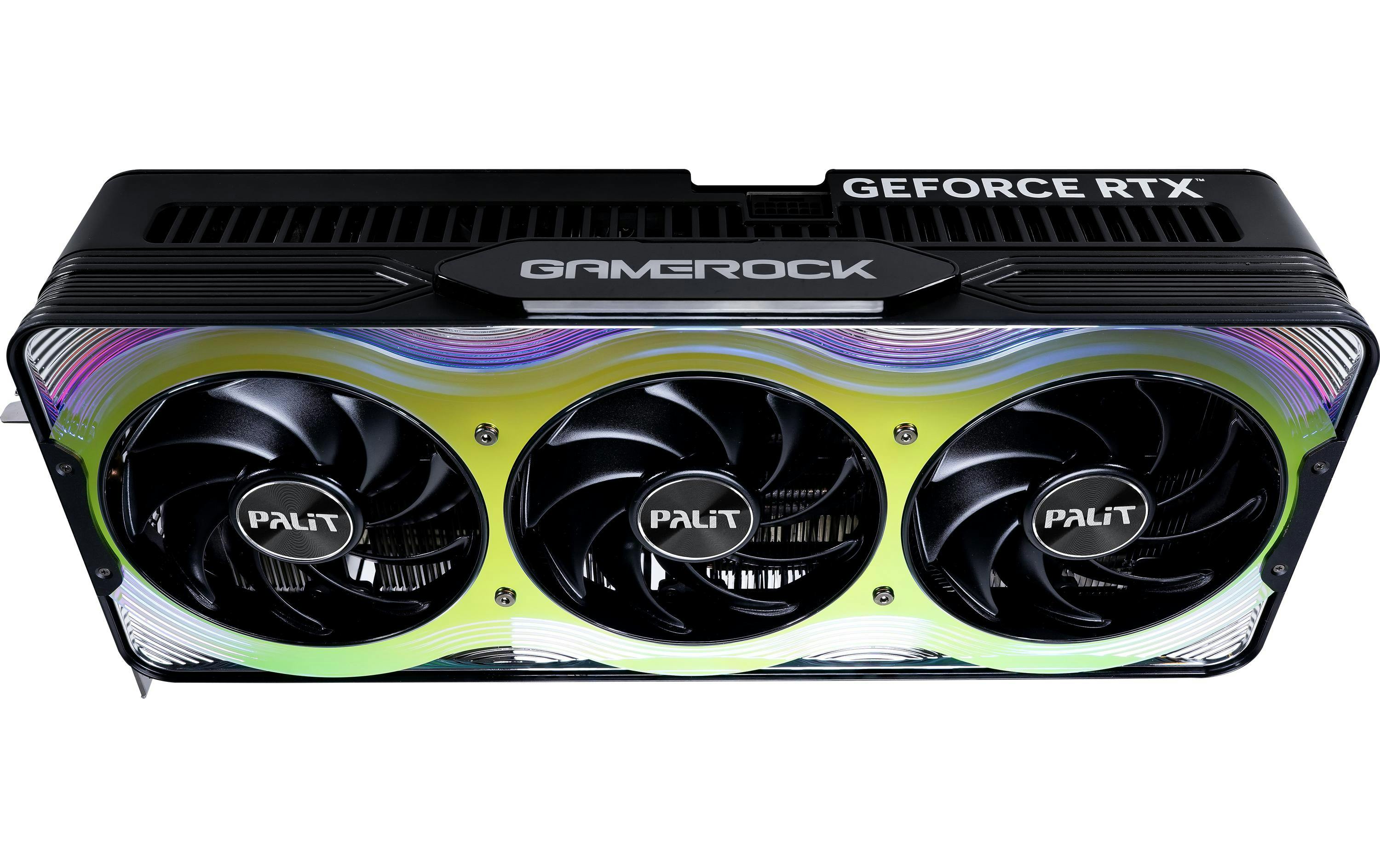 De GameRock van Palit gooit het over een compleet andere boeg, deze kaart zet namelijk vol in op RGB-verlichting en ‘bling’. Met een glimmende, reflecterende voorzijde en uitgebreide RGB-verlichting is het een van de meest visueel opvallende RTX 5090-kaarten. Zeker in een behuizing waar je naar de voorzijde kijkt, kan dat een leuke overweging zijn.