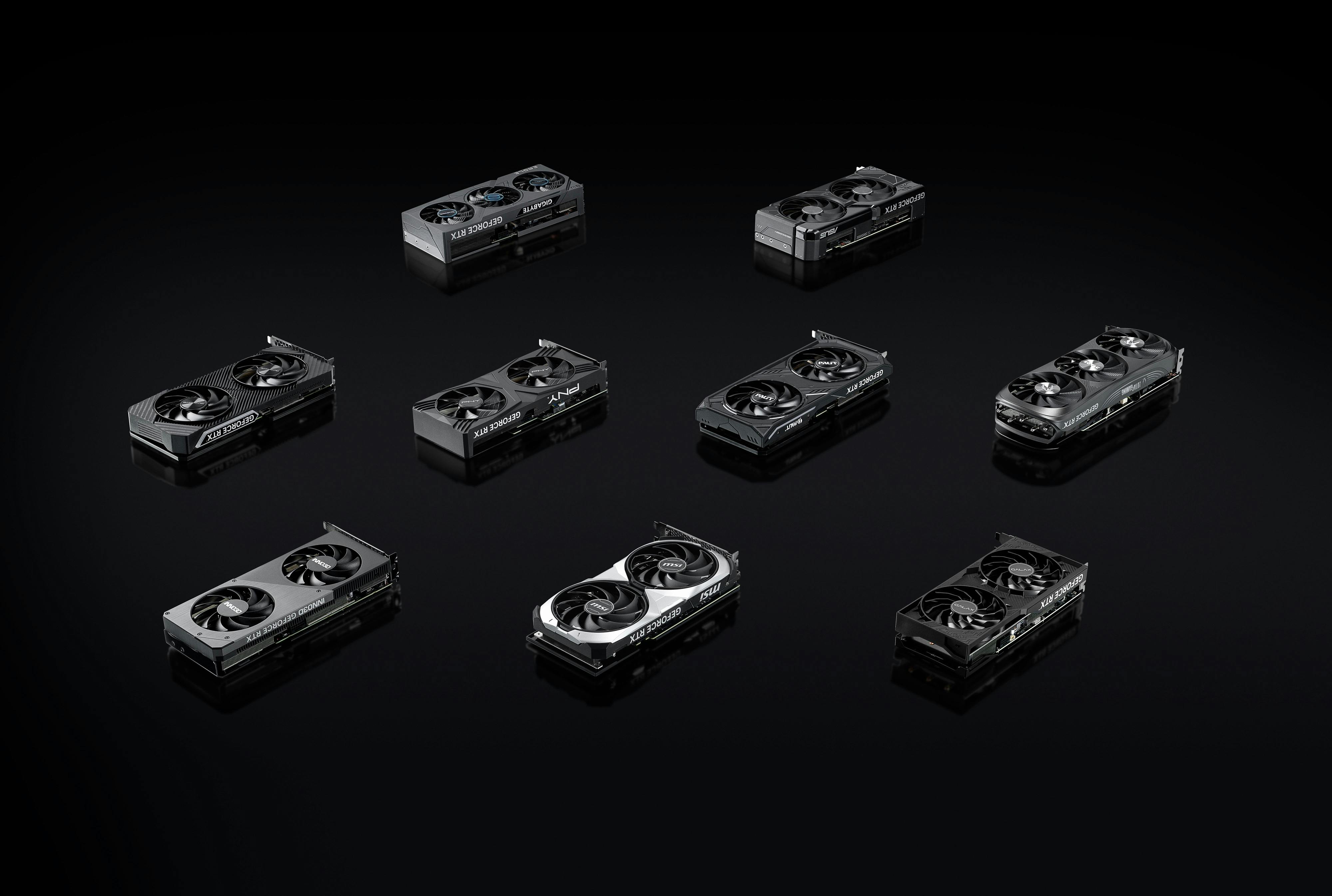 Ook achterop zijn ze gelijk. Alle zes de kaarten komen met drie keer een DisplayPort 1.4- en één HDMI 2.1-aansluiting.
