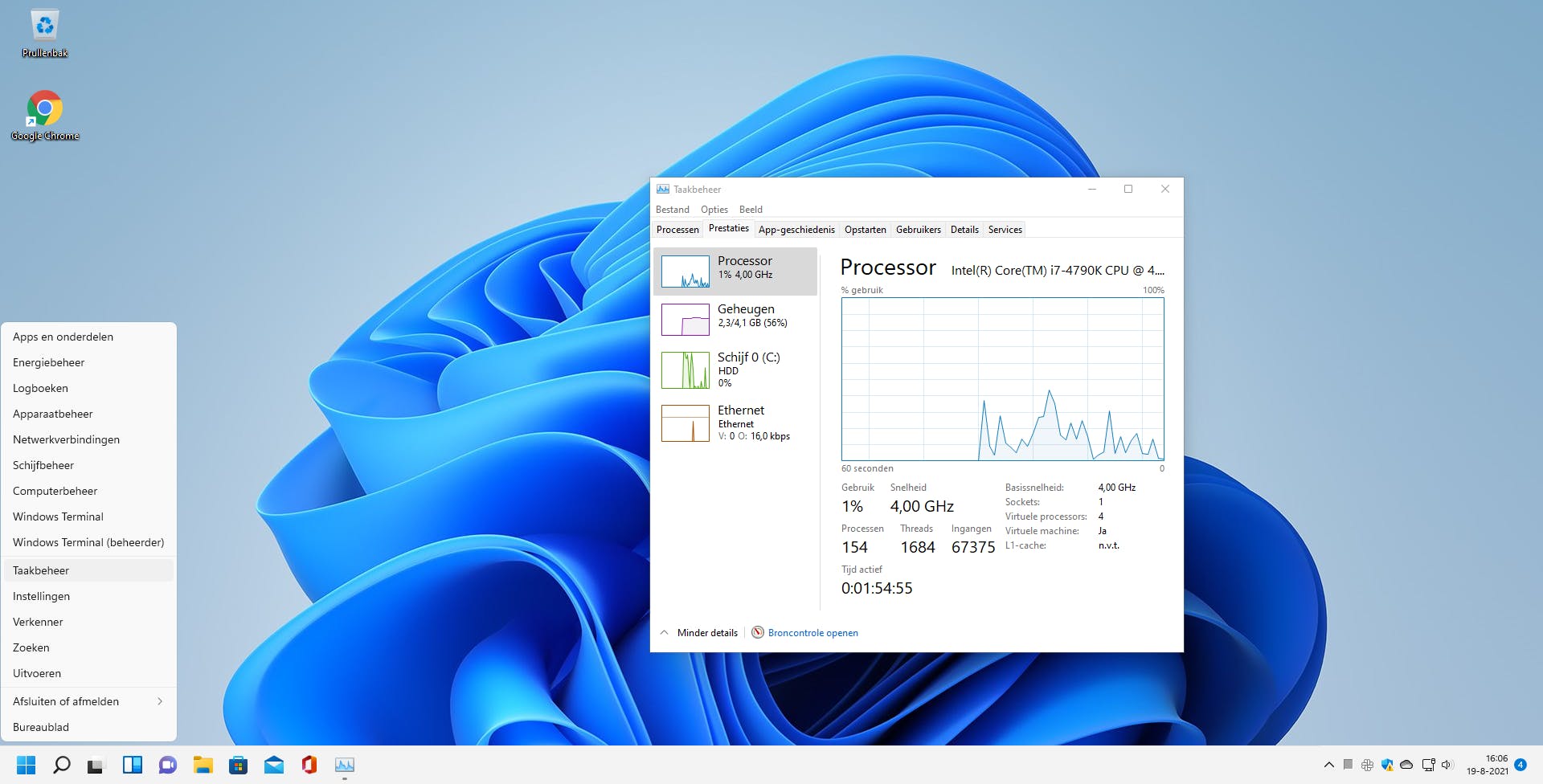 Werken met meerdere bureaubladen ontbreekt ook in Windows 11 niet. Je kunt een nieuw bureaublad toevoegen via de Taakweergave. Die open je door op de knop op de taakbalk te klikken of de toetscombinatie Windows-toets+Tab te gebruiken. Je ziet dan een weergave van je actieve programma’s, met onderaan de optie om nieuwe bureaubladen aan te maken. Je kunt oneindig veel bureaubladen aanmaken, maar of dat nou zo overzichtelijk is, is een tweede. Niet meer mogelijk in Windows 11 is een tijdlijn van recent geopende programma’s en bestanden bekijken. Al kun je de lijst nog wel opvragen in Edge.