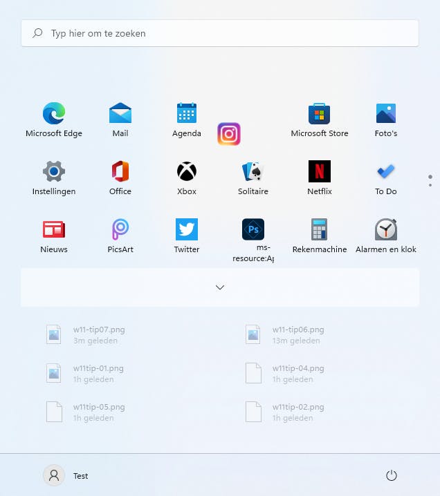 In Windows 10 kon je apps in het startmenu onderverdelen in verschillende (zelfgemaakte) rubrieken. Dat kan in Windows 11 niet meer. Je kunt alleen nog maar apps naar een voor jou wat prominentere plek verplaatsen. Dat doe je heel eenvoudig door een pictogram te selecteren en deze naar de gewenste plek te verslepen. Je kunt een app ook in één keer helemaal linksboven positioneren door op de gewenste app met rechts te klikken en vervolgens te kiezen voor Naar boven verplaatsen. De app wordt dan als eerste getoond in het startmenu.