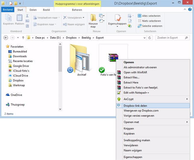 Deel een bestand (of map inclusief inhoud) direct vanuit je Dropbox.