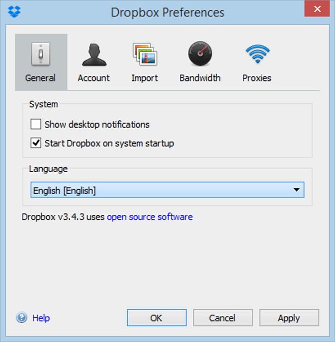 Is je Dropbox Engelstalig? Kies de voor de Nederlandse taal bij de voorkeursinstellingen.