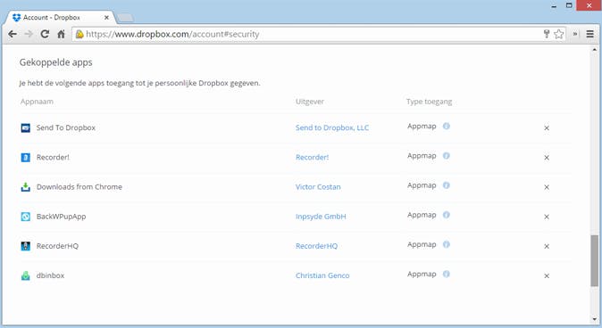 Het is eenvoudig om te controleren welke apps/diensten toegang hebben tot je Dropbox.