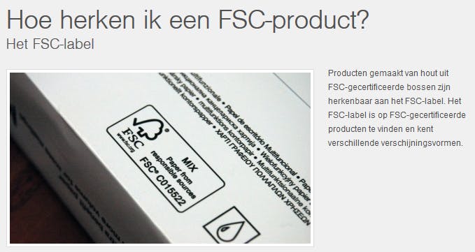 Op vrijwel elk pak papier dat je tegenwoordig aanschaft staat het FSC-keurmerk. Dit wil zeggen dat de bomen die gebruikt zijn voor de productie van dit papier uit verantwoord beheerde bossen komen. De Forest Stewardship Counsil certificeert bedrijven die dit papier leveren en controleert of de afspraken worden nagekomen. Minder bekend is dat het FSC-label verschillende gradaties heeft: 100%, Mix of Recycled. In het laatste geval is het papier geheel vervaardigd uit gerecycled materiaal. Dit label zie je vooral op verpakkingsmateriaal.